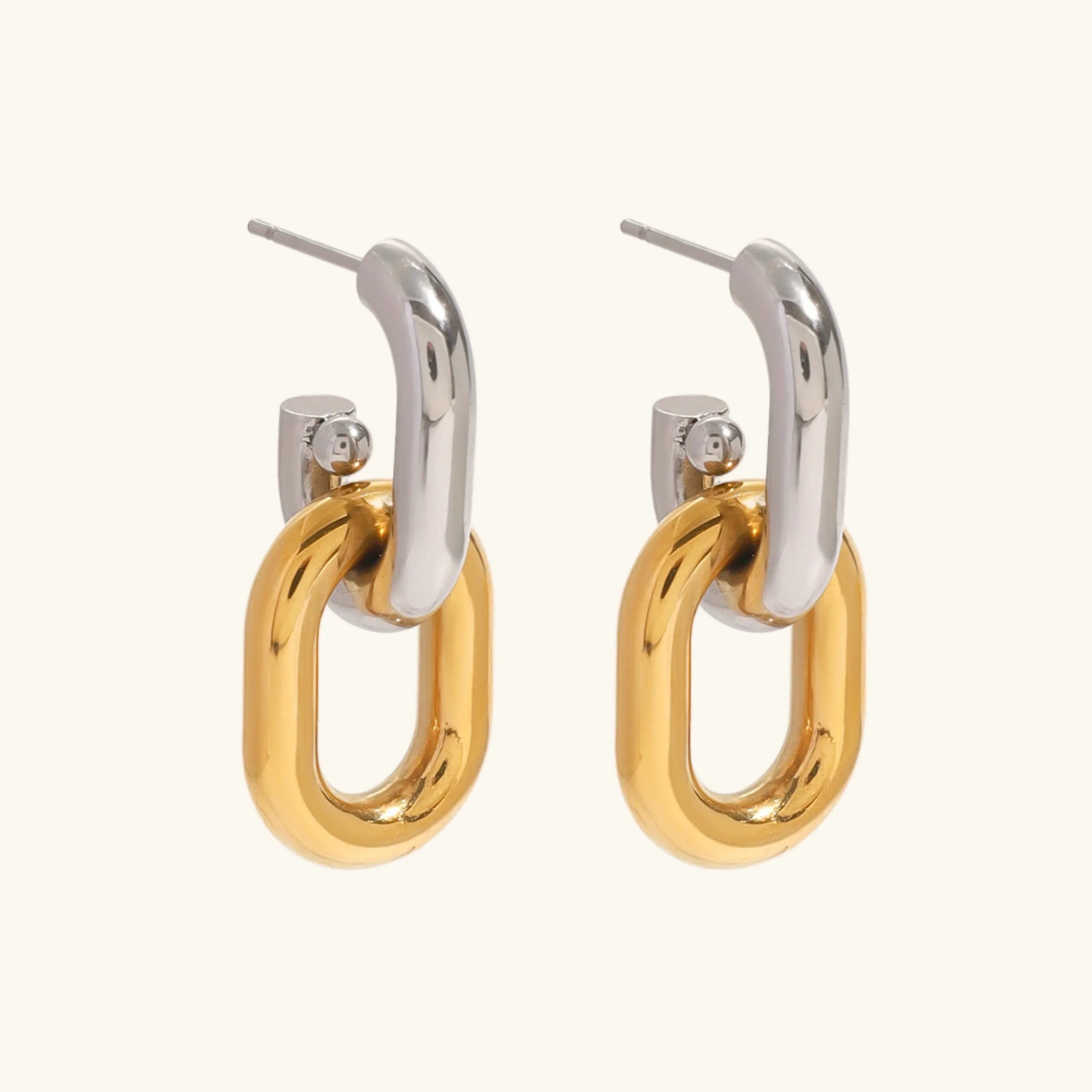 Ouro e Prata, o melhor dos dois mundos. Taylor da Canducha é para quem se recusa a escolher. Esses argolas duplas entrelaçadas trazem uma afirmação ousada ao seu estilo. À prova d’água, hipoalergênico e sempre deslumbrante.