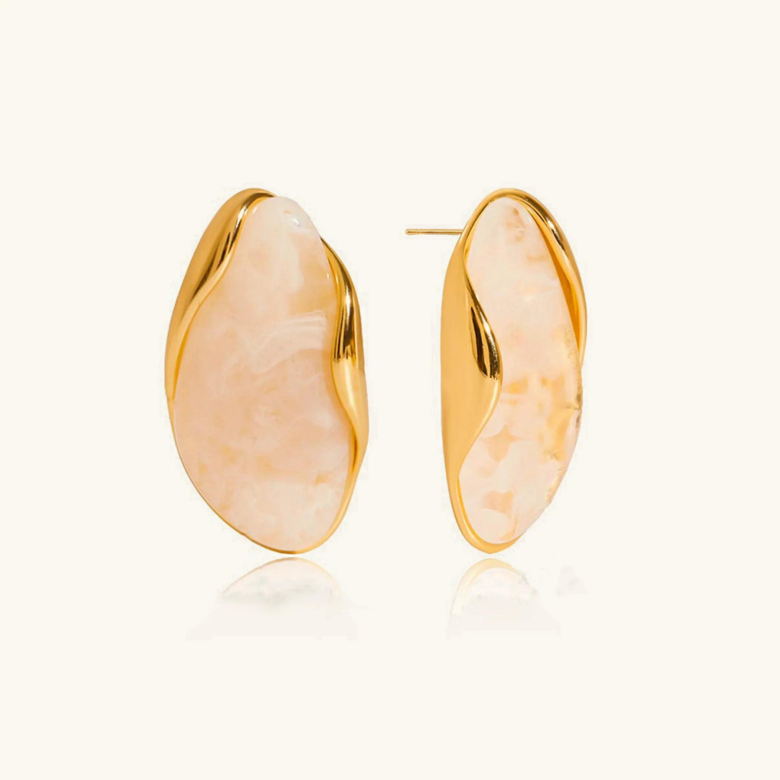 Esculpido como a natureza, refinado como a arte. Os brincos Amelise da Avaria apresentam ouro fluido envolvendo pedras de mármore que parecem brilhar por dentro. Eles são ousados, mas equilibrados, captando a luz a cada giro da cabeça.