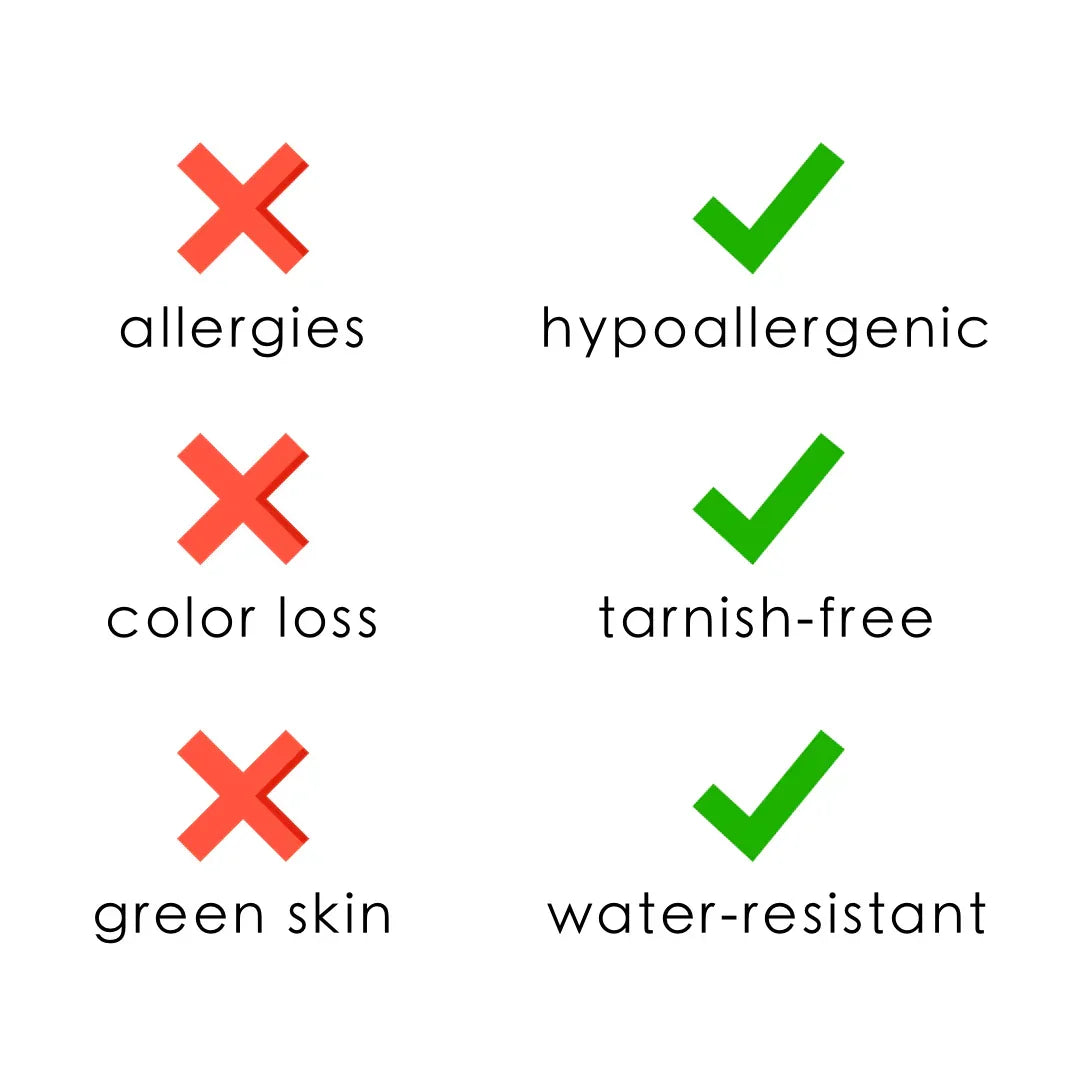 - Ouro 18k e prata banhados em aço inoxidável de alta qualidade.
