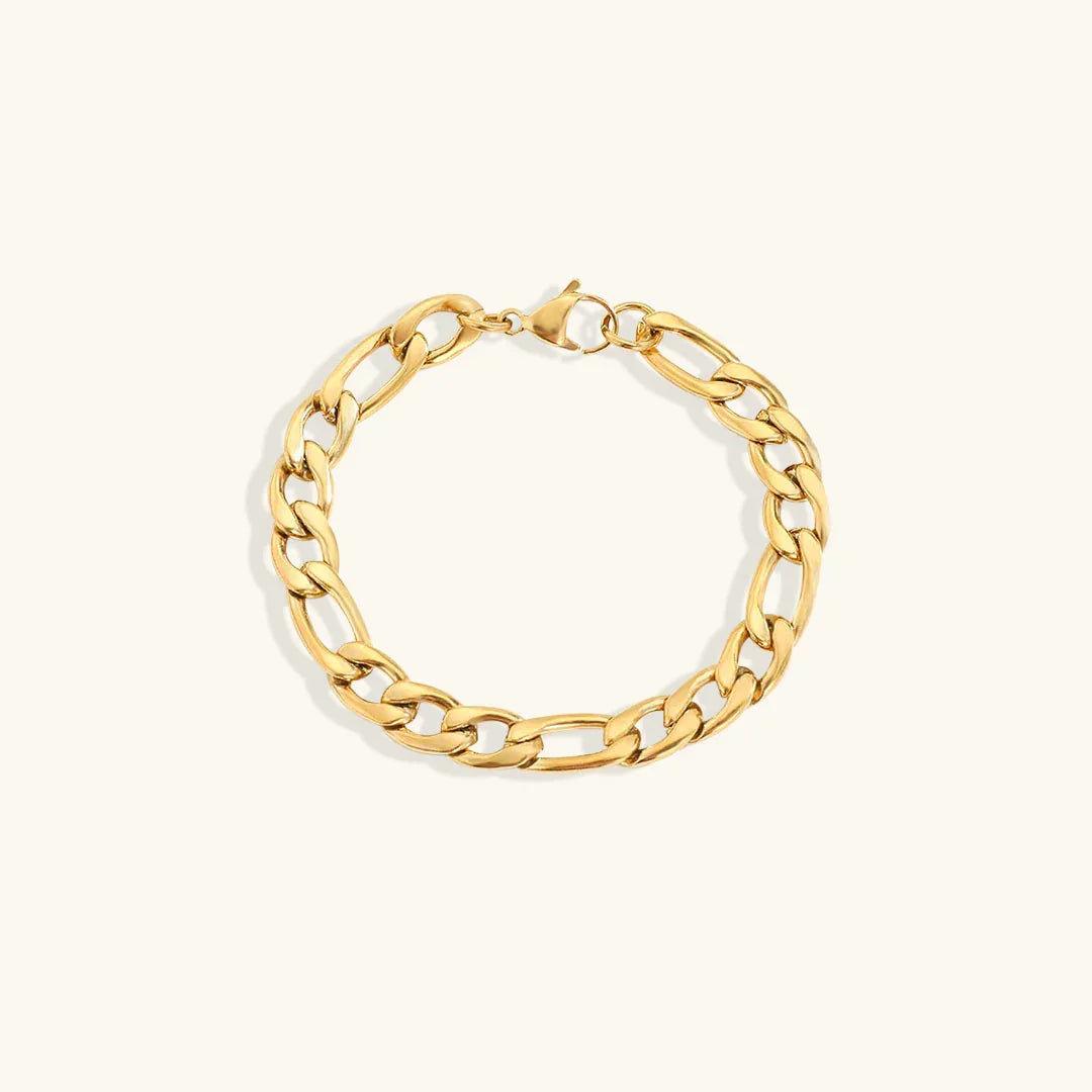 Saturno. Uma pulseira elegante, mas refinada, feita de delicados elos de corrente de ouro que exala um brilho sutil, mas cativante. Este acessório adaptável irá valorizar qualquer look e qualquer evento. Composição: Ouro 14k banhado em aço inoxidável de alta qualidade Água, suor e resistente ao calor. (Sem descoloração, sem manchas). Hipoalergênico e amigo da